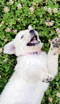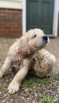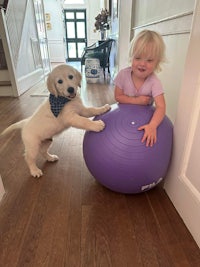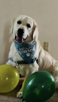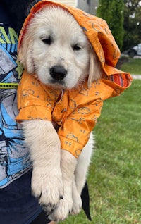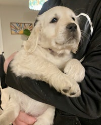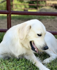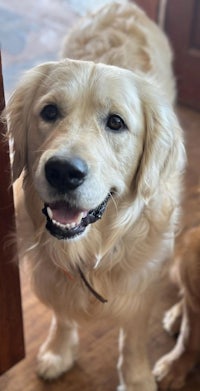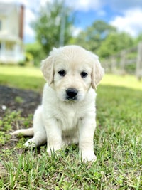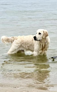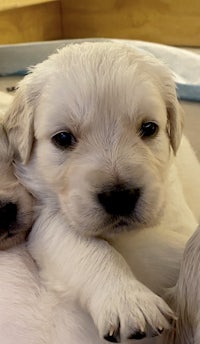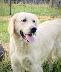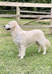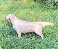 Luna is the sweetest girl in the world! She’s extremely intelligent and intuitive plus has gorgeous good-looks with big beautiful eyes. She enjoys all the typical golden activities including swimming, fetching, and even hunting! She is a superstar mama. She had a large litter of 12 happy/healthy puppies in 2023 and litter of 10 pups in 2024! She is now retired from breeding and continues to live the good life on the farm!